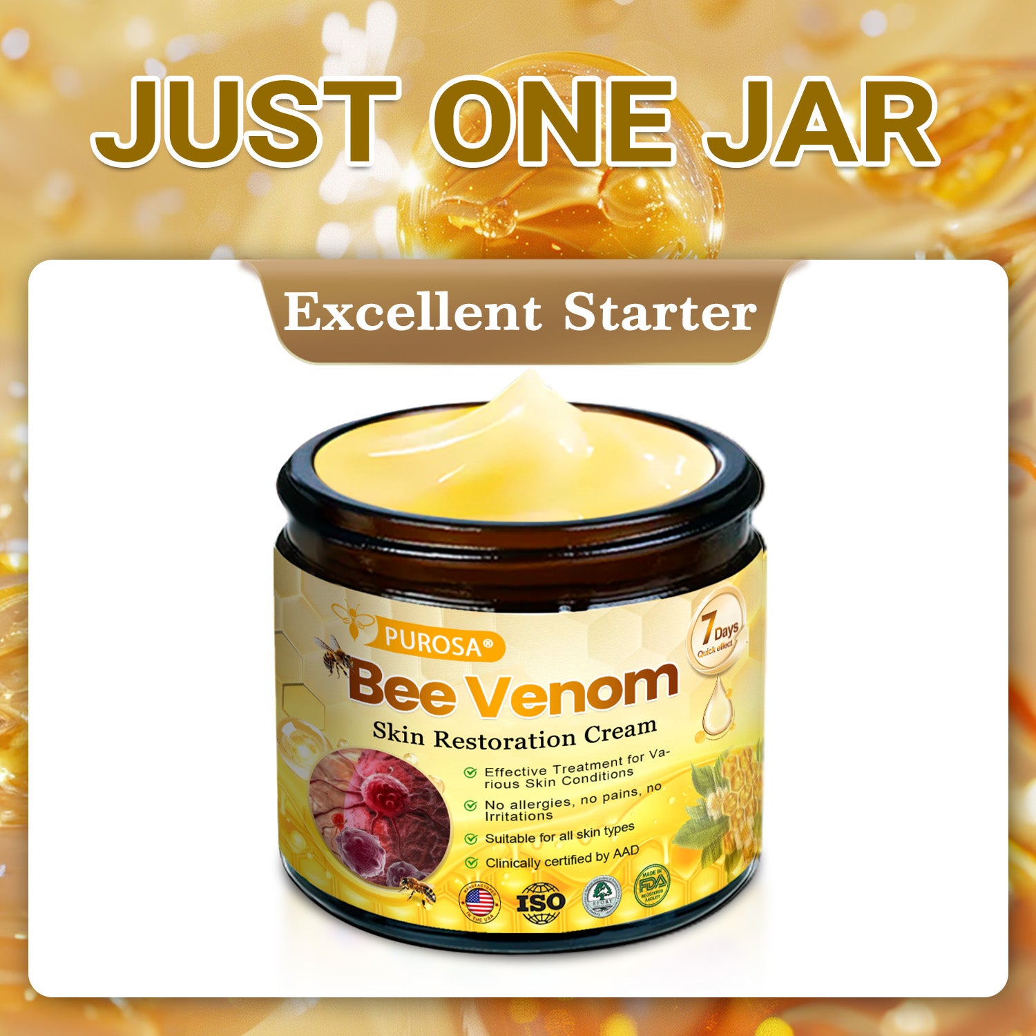 ✅Effective Results: PUROSA® 𝘽𝙀𝙀 𝙑𝙀𝙉𝙊𝙈 Skin Restoration Cream delivers noticeable results, providing visible improvements to your skin's tone, texture, and firmness.